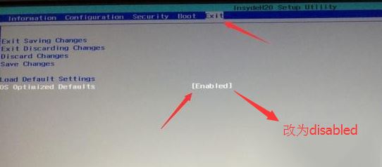 2、轉(zhuǎn)到Exit,把OS Optimized Defaults設(shè)置為Disabled或Other OS;