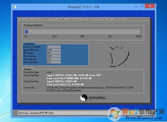 4、接下去會出現(xiàn)GHO恢復到電腦C盤的過程。