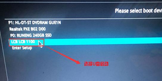 5、插入U盤啟動盤,重啟時不停的按下f12,打開快速引導(dǎo)菜單,選擇識別的U盤啟動回車從U盤啟動,如下圖所示;