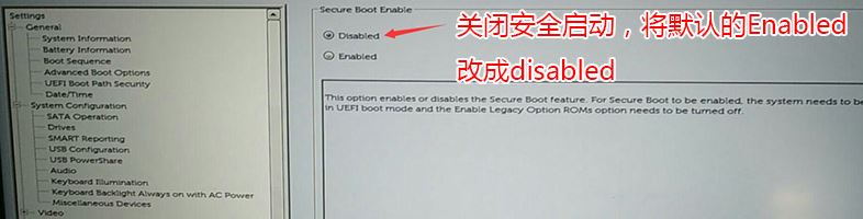 1、開機(jī)一直按F2進(jìn)入BIOS,按F2進(jìn)入BIOS界面,切換到secure BOOT頁面,選擇secure Boot Enable按回車改成Disabled,如圖所示;