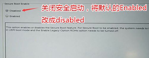1、開機一直按F2進入BIOS,按F2進入BIOS界面,切換到secure BOOT頁面,選擇secure Boot Enable按回車改成Disabled,如圖所示;