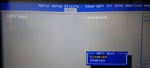 3、選擇UEFI Boot回車設(shè)置成Disabled,如果有CSM,設(shè)置為Enabled,開(kāi)啟兼容模式,然后按F10保存設(shè)置;