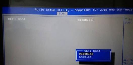 3、選擇UEFI Boot回車設(shè)置成Disabled,如果有CSM,設(shè)置為Enabled,開啟兼容模式,然后按F10保存設(shè)置;