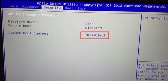 1、重啟筆記本按F2進(jìn)入BIOS設(shè)置,在Security下把Secure Boot Control設(shè)置為Disabled關(guān)閉安全啟動,如下圖所示;