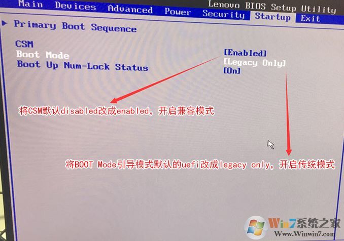 3、切換到Boot,把Boot Mode從UEFI改成Legacy only引導(dǎo)模式,再把csm默認(rèn)disabled改成enabled,開(kāi)啟兼容模式,選擇F10保存設(shè)置,在彈出的選項(xiàng)中選擇YES;