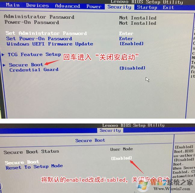 1、開(kāi)機(jī)一直按F2或(FN+F2)進(jìn)入BIOS,按→方向鍵切換到Security,選擇Secure Boot回車設(shè)置成Disabled;