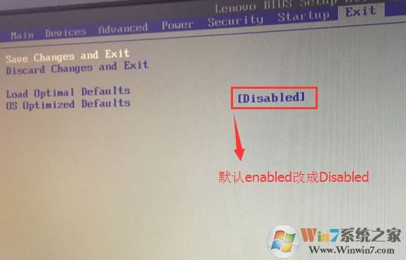 2、轉(zhuǎn)到Exit,把OS Optimized Defaults設(shè)置為Disabled;