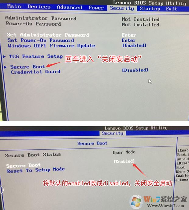 1、開機(jī)一直按F2或(FN+F2)進(jìn)入BIOS,按→方向鍵切換到Security,選擇Secure Boot回車設(shè)置成Disabled;