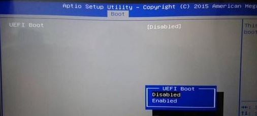 3、選擇UEFI Boot回車設(shè)置成Disabled,如果有CSM,設(shè)置為Enabled,開啟csm兼容模式,也就是開啟后才可以安裝win7,然后按F10保存設(shè)置;