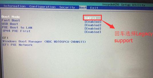 4、切換到Boot,把Boot Mode從UEFI改成Legacy Support;