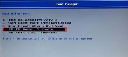 5、插入U(xiǎn)盤啟動盤,重啟時(shí)不停的按下f12,打開Boot Manager,選擇USB HDD回車從U盤啟動,如下圖所示;