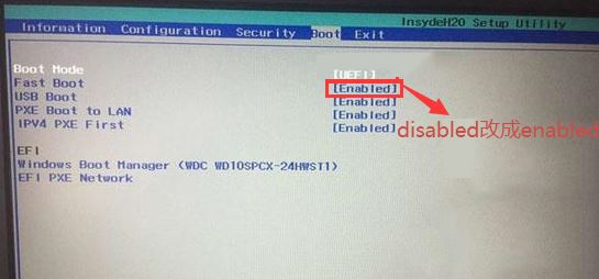 4、切換到Boot,把Fast Boot從Disabled改成Enabled,開啟快速啟動(dòng)設(shè)置U盤啟動(dòng);