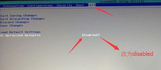 2、轉(zhuǎn)到Exit,把OS Optimized Defaults設(shè)置為Disabled或Other OS;