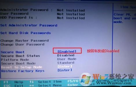 1、開機(jī)一直按F2或(FN+F2)進(jìn)入BIOS,按→方向鍵切換到Security,選擇Secure Boot回車設(shè)置成Disabled;