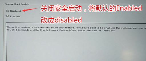 1、開(kāi)機(jī)一直按F2進(jìn)入BIOS,按F2進(jìn)入BIOS界面,切換到secure BOOT頁(yè)面,選擇secure Boot Enable按回車(chē)改成Disabled,如圖所示;