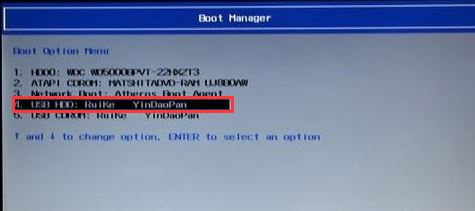 5、插入U盤啟動盤,重啟時不停的按下f12,打開Boot Manager,選擇USB HDD回車從U盤啟動,如下圖所示;