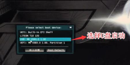 5、插入U(xiǎn)盤啟動(dòng)盤,重啟不停的按F11,選擇識(shí)別到U盤啟動(dòng)項(xiàng)(默認(rèn)有uefi U盤啟動(dòng)和傳統(tǒng)模式,這里記得要uefi啟動(dòng)的就要制作支持uefi的U盤啟動(dòng)),回車,如圖所示;