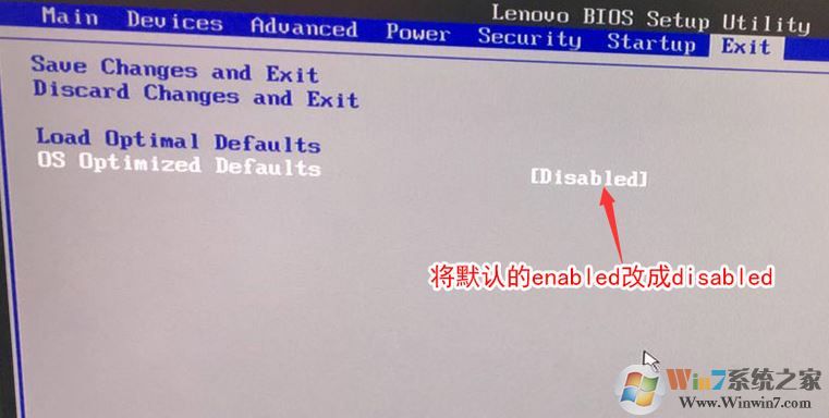 2、轉(zhuǎn)到Exit,把OS Optimized Defaults設(shè)置為Disabled,如下圖所示;