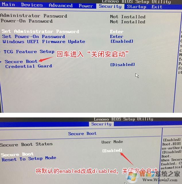 1、開機(jī)一直按F2或(FN+F2)進(jìn)入BIOS,按→方向鍵切換到Security,選擇Secure Boot回車設(shè)置成Disabled;