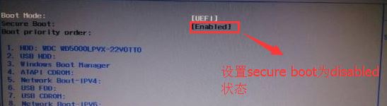 返回BOOT選項(xiàng),將Secure BOOT默認(rèn)enabled為disabled,關(guān)閉安全啟動(dòng),如圖: