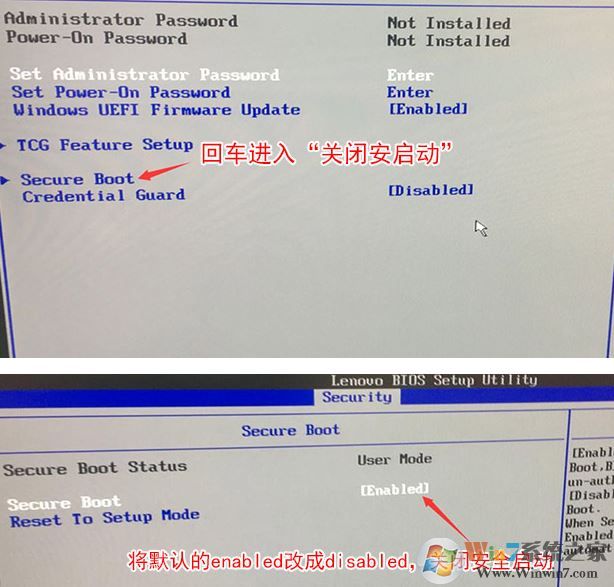 1、開機一直按F2或(FN+F2)進入BIOS,按→方向鍵切換到Security,選擇Secure Boot回車設(shè)置成Disabled;