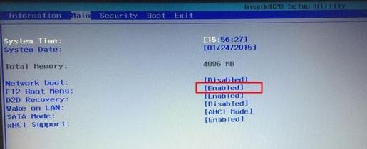 4、轉(zhuǎn)到Main,選擇F12 Boot Menu回車(chē),設(shè)置為Enabled,按F10選擇Yes回車(chē)保存修改,如下圖所示;