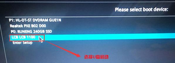 4、插入U(xiǎn)盤啟動(dòng)盤,重啟按ESC選擇識(shí)別到U盤啟動(dòng)項(xiàng),回車;
