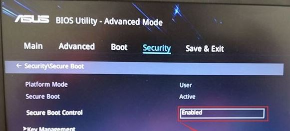 2、進(jìn)入高級模式后,按→方向鍵移動到Security,選擇Secure Boot,然后回車進(jìn)入把Secure Boot control選enabled改為disabled關(guān)閉安全啟動,裝win7必須關(guān)閉安全啟動,如下圖所示;