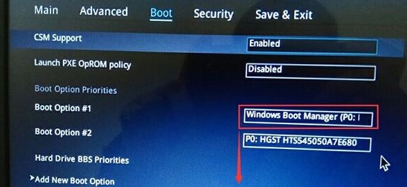 4、繼續(xù)把boot option#1選項改為普通引導(dǎo)的,boot option#1和boot option#2硬盤啟動位置對換,設(shè)置第一啟動項為普通硬盤引導(dǎo),帶Windwos Boot Manager的為UEFI引導(dǎo)分區(qū),然后按F10保存設(shè)置;