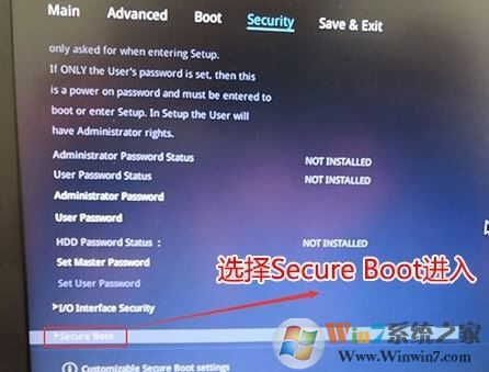 2、進入高級模式后,按→方向鍵移動到Security,選擇Secure Boot,然后回車進入把Secure Boot control選enabled改為disabled關(guān)閉安全啟動,裝win7必須關(guān)閉安全啟動,如下圖所示;