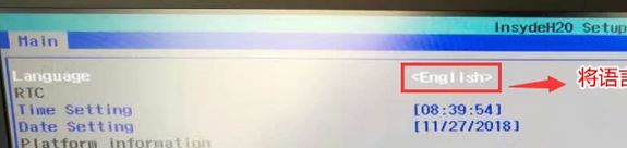 2、進入BIOS界面后,我們首先把BIOS語言改成“簡體中文”,如下圖所示: