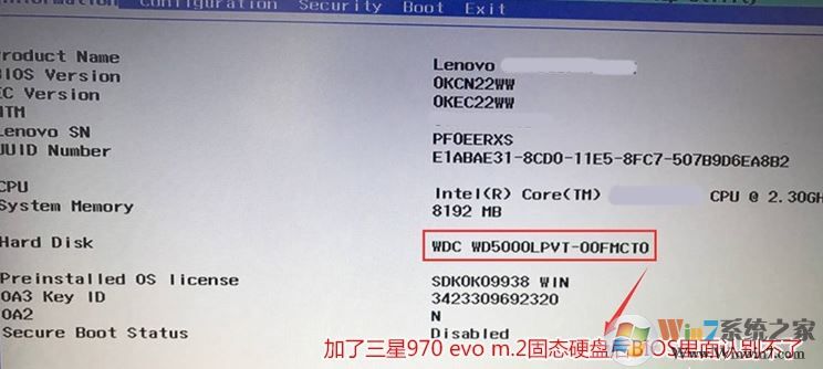 1、開機(jī)一直按F2或(FN+F2)進(jìn)入BIOS,進(jìn)入BIOS后我們新加的三星970 evo硬盤是無法識(shí)別的,只能看到當(dāng)前第一塊機(jī)械硬盤,需要把硬盤改成gpt分區(qū)并引導(dǎo)為uefi的才行,如下圖所示;