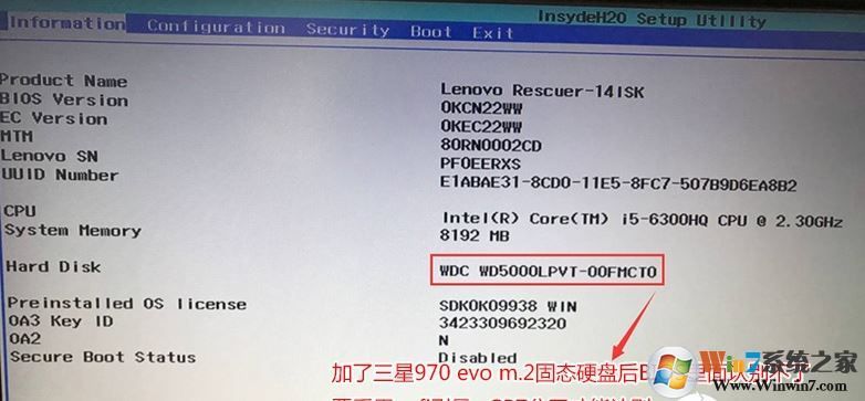 聯(lián)想拯救者15isk預裝win10改win7教程步驟二:BIOS修改與U盤啟動
