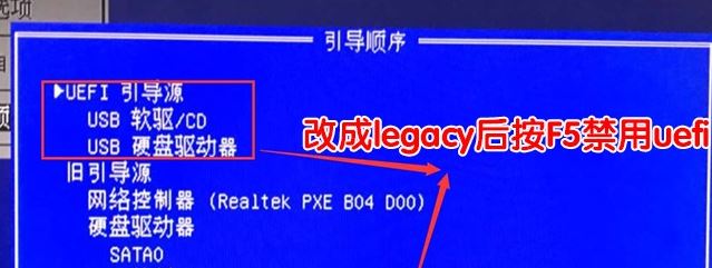 3、然后進入存儲選項,然后選擇引導順序,如果我們改成legacy舊支持后,這里進入后按F5禁用uefi引導源,如下圖所示;