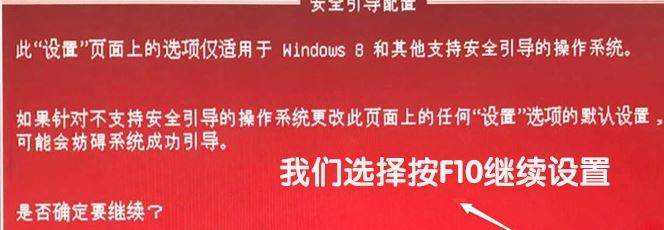 1、開機一直按F10進入BIOS,如果沒反應則啟動時按ESC,出現(xiàn)以下界面后,再按F10進入BIOS,切換到Security(安全)選項--Secure Boot Configuration(安全引導配置)點擊回車鍵,如果彈出紅色界面,請按F10接受,如下圖所示;