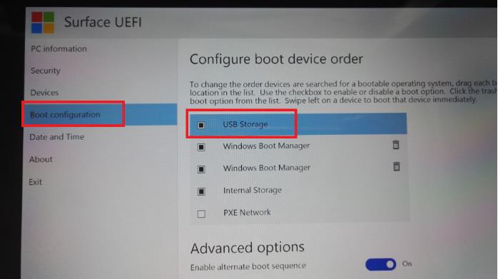 Surface Pro 4/5平板電腦進(jìn)BIOS設(shè)置U盤啟動(dòng)步驟: