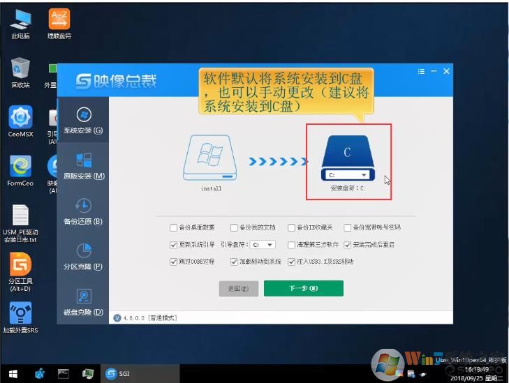 5、軟件默認(rèn)將系統(tǒng)裝到C盤,當(dāng)然也可以手動(dòng)更改盤符(建議將系統(tǒng)安裝到C盤);