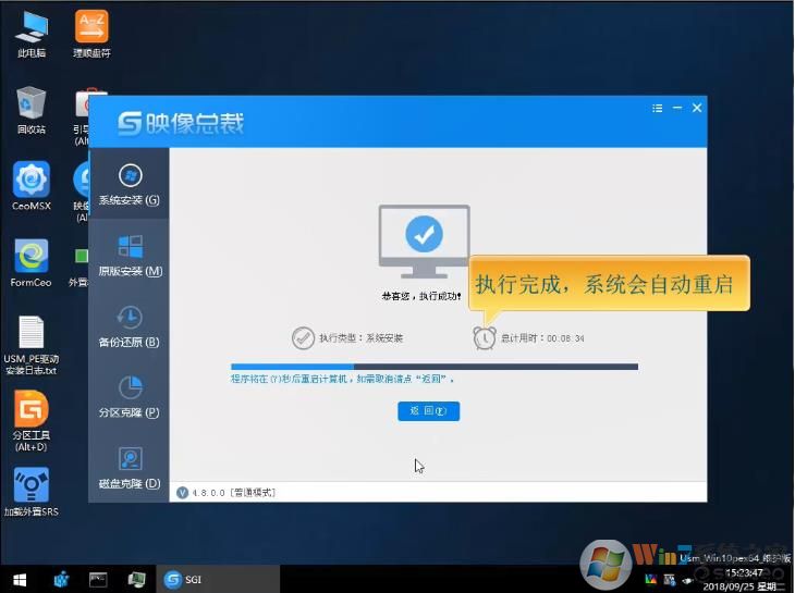 8、執(zhí)行完成后,拔出U盤,系統(tǒng)將重啟,自動(dòng)進(jìn)入安裝系統(tǒng)的過程;