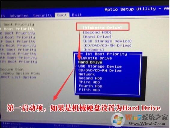 4、改完后再BOOT第一啟動(dòng)項(xiàng),如果有固態(tài)硬盤將選擇Second HDD 為第一啟動(dòng)項(xiàng),如果選擇機(jī)械盤啟動(dòng)系統(tǒng)的加就選擇Hard Devive ,如下圖所示;