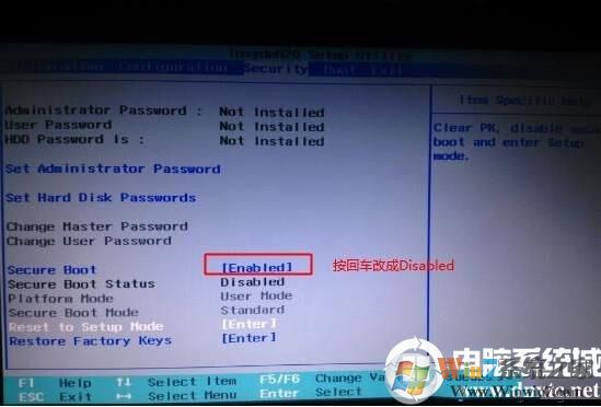 1、開機一直按F2或(FN+F2)進入BIOS,按→方向鍵切換到Security,選擇Secure Boot回車設(shè)置成Disabled,關(guān)閉安全啟動后才能改legacy傳統(tǒng)模式引導(dǎo)U盤啟動,如下圖所示;