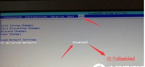 2、轉(zhuǎn)到Exit,把OS Optimized Defaults設(shè)置為Disabled或Other OS,讓U盤啟動盤支持傳統(tǒng)引導(dǎo),如下圖所示;