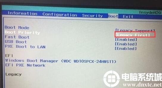 5、再把Boot Priority設(shè)置成Legacy First,按F10彈出窗口選擇yes回車(chē);