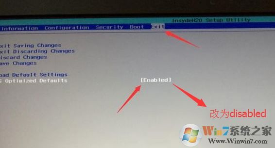2、轉(zhuǎn)到Exit,把OS Optimized Defaults設(shè)置為Disabled或Other OS;