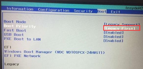 5、再把Boot Priority設(shè)置成Legacy First,按F10彈出窗口選擇yes回車;