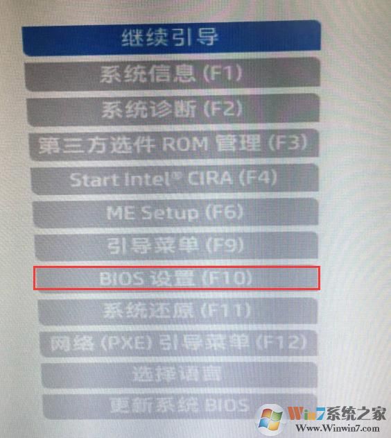 1、開機(jī)一直按按ESC,出現(xiàn)以下界面后,再按F10進(jìn)入BIOS,如下圖所示;