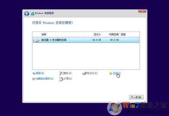 3、接下去啟動到Windows10安裝界面,在分區(qū)界面,大家要把所有之前MBR分區(qū)都刪除掉,然后重新創(chuàng)建分區(qū),系統(tǒng)會自動設(shè)置為GPT分區(qū)模式。