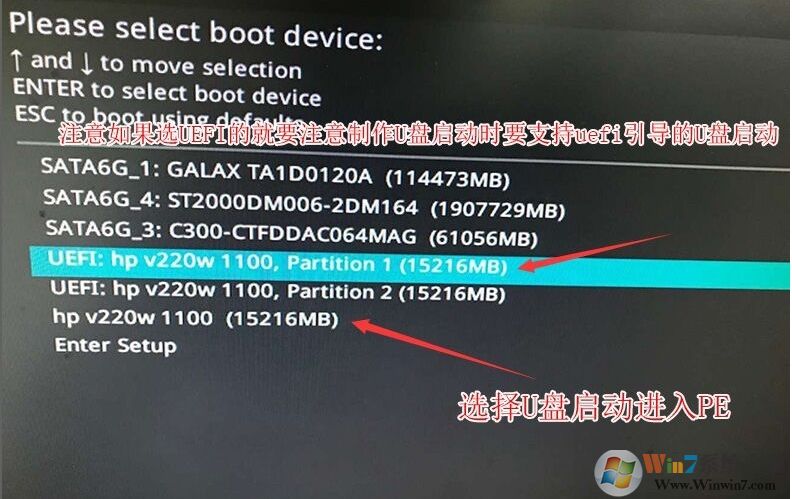 5、把剛制作好的U盤啟動(dòng)盤插入到機(jī)器上,重啟按ESC選擇識(shí)別到U盤啟動(dòng)項(xiàng),回車;