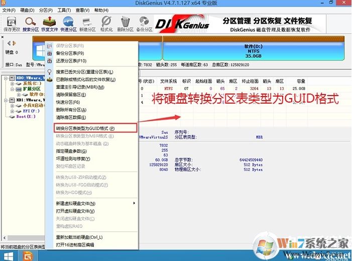 1、選擇U盤啟動(dòng)盤進(jìn)入PE后,在桌面上運(yùn)行DiskGenius分區(qū)工具,點(diǎn)擊菜單欄的【硬盤】,選擇【轉(zhuǎn)換分區(qū)表類型為guid格式】,然后保存更改,如下圖所示;