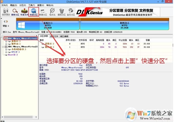 2、然后選擇要分區(qū)的硬盤,點(diǎn)擊上面【快速分區(qū)】,如下圖所示;