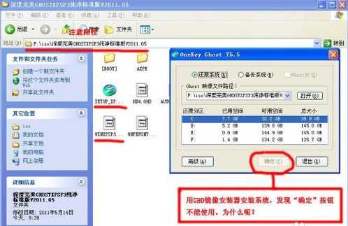 總的來說出現(xiàn)不能點(diǎn)擊確定的情況,大多是由于GHO文件不存在,或是GHO文件的目錄太深或使用了不可識(shí)別的字符導(dǎo)致OneKey Ghost安裝器不能繼續(xù)。還有一個(gè)是格式在備份前和恢復(fù)時(shí)不一樣。